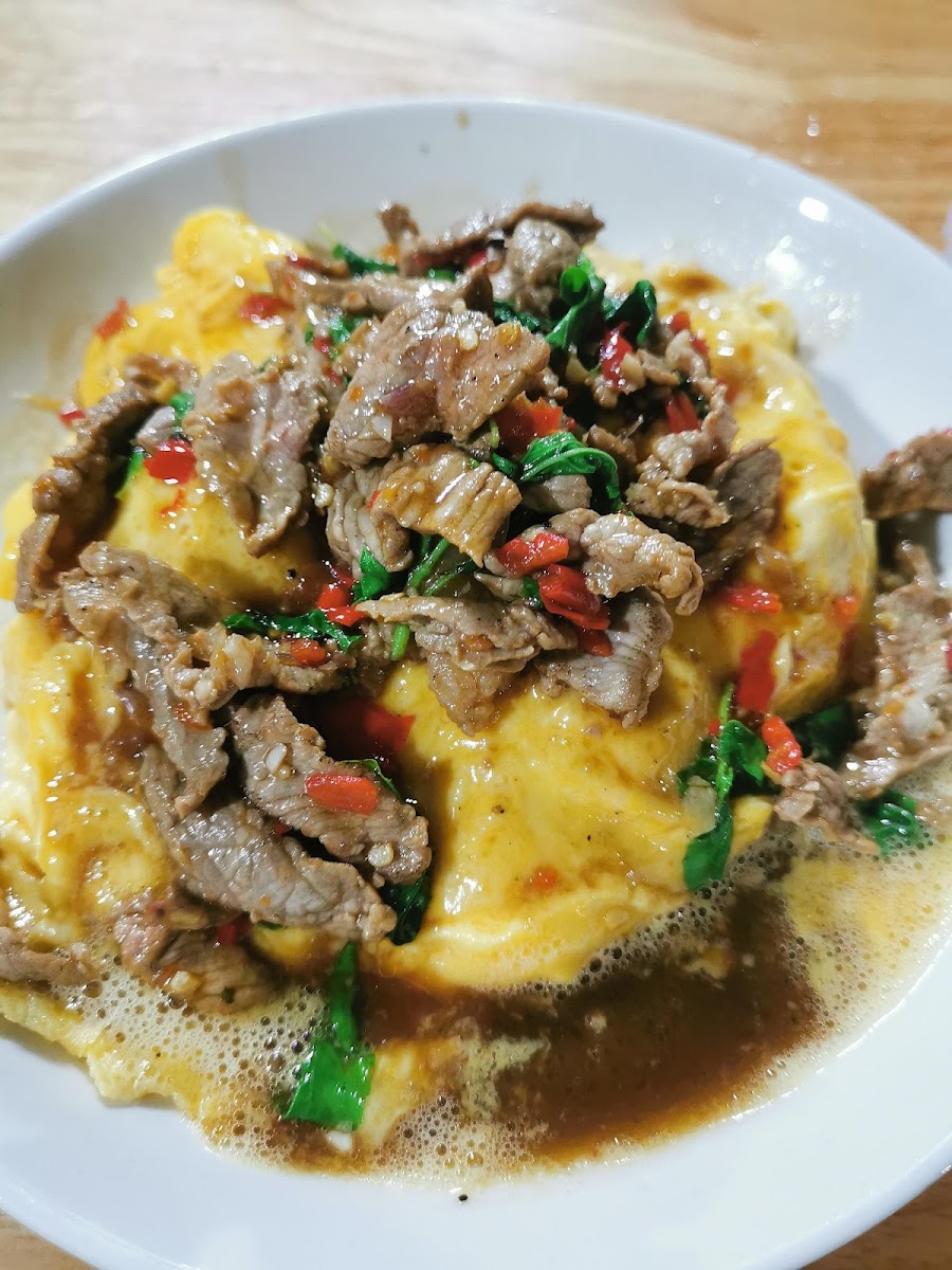The menu is a testament to the café’s commitment to quality and flavor. Dive into culinary creations that will tantalize your taste buds, like the ข้าวไข่ข้นกุ้ง (Stir-fried Rice with Creamy Shrimp), renowned for its generous serving and delightful richness. Or, indulge in the ไข่ข้นกะเพราเนื้อ (Stir-fried Beef with Basil and Creamy Egg), where each bite is a heavenly mix of savory spices and tender beef.